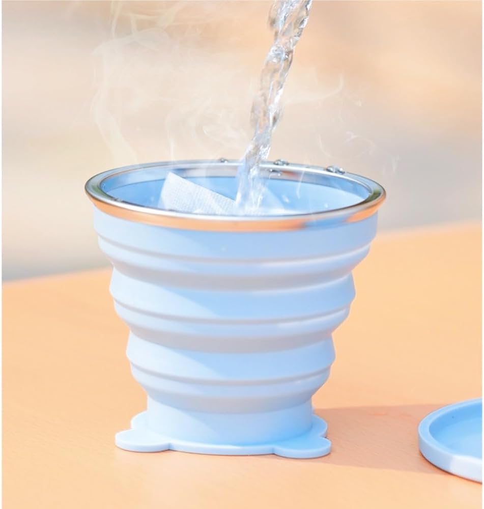 - Collapsible travel coffee cup perfectly portable for your commute, camping trips, tea at home, and travels. When you’re done, simply remove the heat sleeve, open the tab, and collapse it down