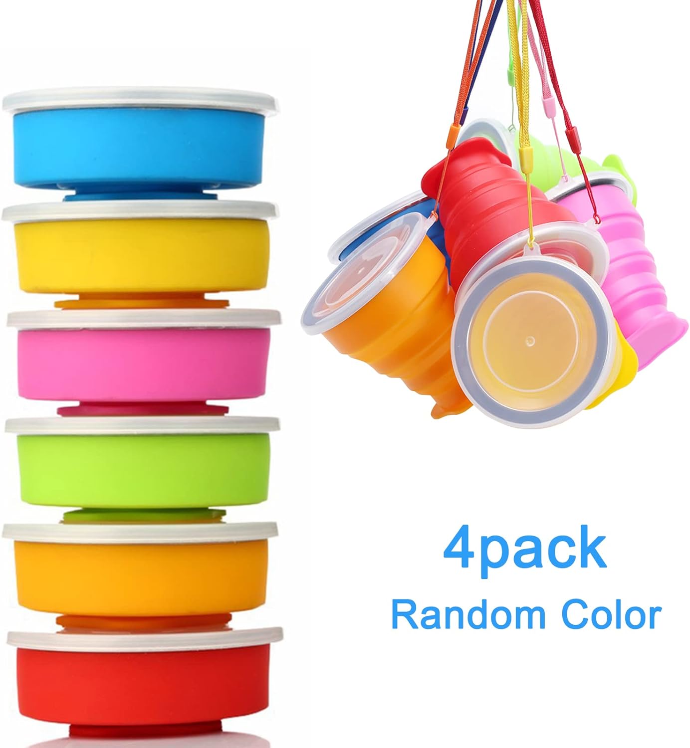 Silicone Collapsible Travel Cup, 4 Pack Collapsible Silicone Cup with Lid, Expandable Drinking Cup Set, Reusable Mug for Camping, Hiking, Travel